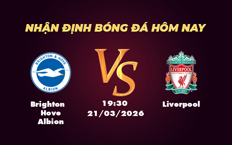 Nhận định, Soi kèo Brighton Hove Albion vs Liverpool, dự đoán giải Ngoại hạng Anh hôm nay 19:30 ngày 21/03 chính xác. Nhận định bóng đá, phân tích tỷ lệ kèo England dự đoán kết quả tỷ số trận đấu tối và đêm nay nhanh nhất.